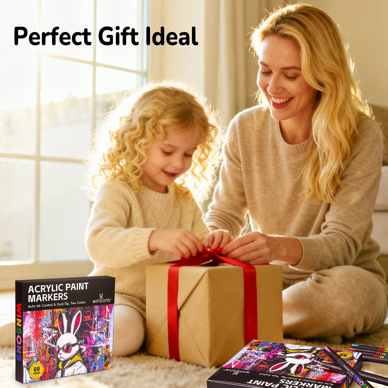 Acrylic Paint Markers Auto Ink Control & Dual-Tip, Two Colors 60 Colours