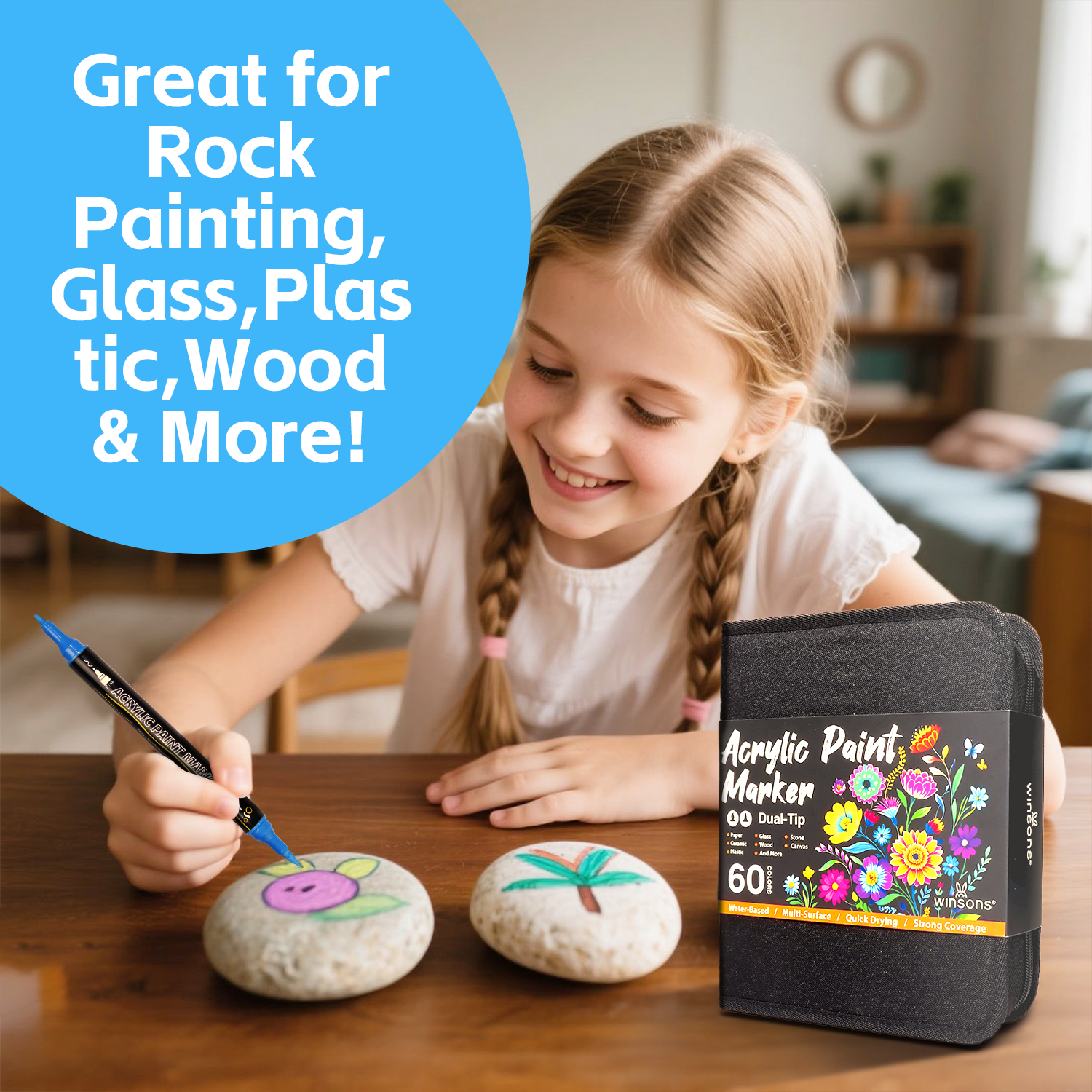 🖌️ Multi-Surface Creativity – Works on canvas, paper, wood, plastic, metal, glass, ceramic, fabric, and rocks.